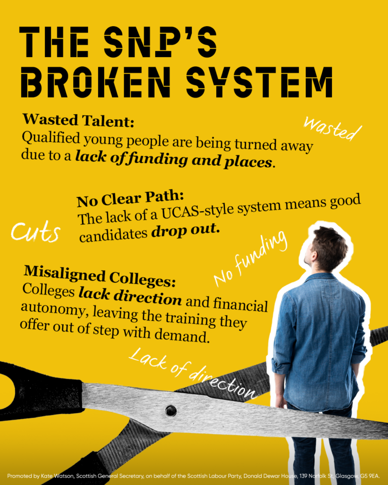 Schools and classrooms should be spaces for learning, growing and flourishing, but in Scotland currently, huge inequalities persist. As many as 1 in 6 young people aged 16-24 in Scotland are not in education, work or training and for those who do not go straight to university the pathways to skills and well-paid work are too narrow. Colleges have been undermined by years of funding cuts and our education system is not well enough connected to the real economy.
